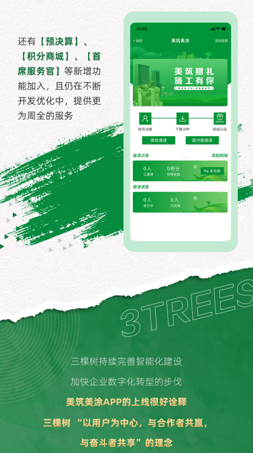 三棵树美筑美涂APP让天下没有难做的工程生意